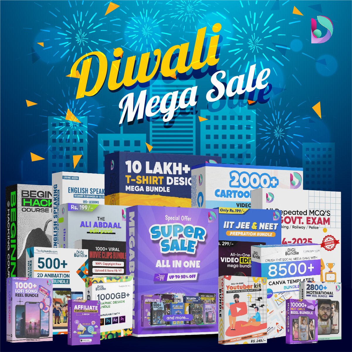 Celebrate this Diwali with an exclusive All-in-One Digital Products Bundle — your complete toolkit for digital success! ✨